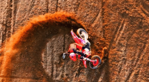 • Demi-wheeling latéral pour repositionner la moto sur une trajectoire plus haute.