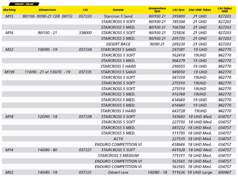 BIB MOUSSE 100/90-19 – 120/80-19 – MICHELIN M22