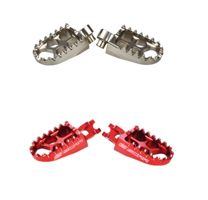 Les reposes pieds SCAR sont fabriqués en titane issu de l’aéronautique. Idéal pour les conditions extrêmes de type sable et boue. Chaque repose pied possède 18 dents pour améliorer le grip et la solidité du repose pied, il mesure 57 mm de largeur (10 mm de plus qu’un repose pied d’origine)