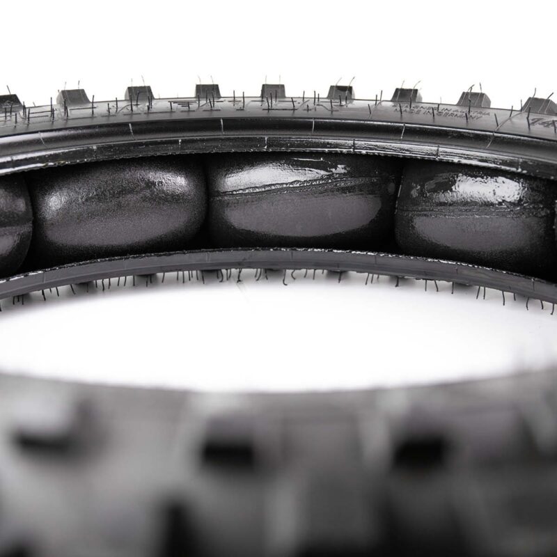 Sa densité spécifique EXH2 (Extra Hard) permet un comportement plus ferme tout en conservant une bonne déformation pour maximiser l’adhérence en condition difficile. Que tu sois sur une spéciale technique ou en franchissement, elle garde sa forme, résiste à l’échauffement et assure un maintien parfait du pneu.