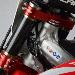 Parmi ses produits phares, on retrouve les tés de fourche usinés CNC, repose-pieds, leviers, pédales de frein, sélecteurs, pontets et guidons. Tous sont fabriqués avec des matériaux premium comme l’aluminium 7075-T6, assurant une résistance maximale et un poids réduit. SCAR s’est imposée comme un choix de confiance pour les pilotes exigeants, grâce à un savoir-faire technique précis et un design racé.